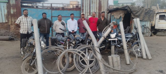 या प्रसंगी ईसमांची कसुन विचारपूस केली तर ते पोपटा सारखे बोलायला लागले सदर माल “ctps या कंपनीतील, लोखंडी पाईप व तार आहे” “त्यांना विक्री करीता घेऊन जात आहे” फरार ईसमांनी तीन दुचाकी घटनास्थळावर सोडून पसार झाले असता त्या ताब्यात घेत दुचाकीसह पाईप व ताराची २ लाख ५९ रूपयांचा किंमतीचा मुद्देमाल हस्तगत केल्याची माहीती सूत्रानुसार प्राप्त झाली.