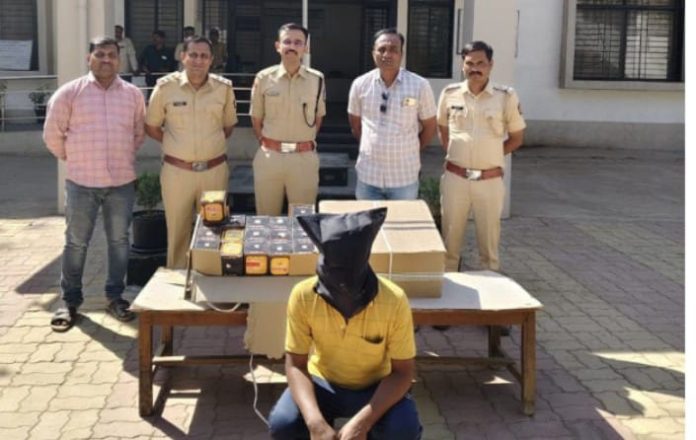 चंद्रपुर में राजुरा के समीप 6 मार्च 2025 को पुलिस स्टेशन राजुरा के पांडुरंग हाके के साथ तिरुपती जाधव पुलिस स्टेशन परिसर में निजि वाहन से रवाना होकर पेट्रोलिंग करते समय गुप्त खबरी व्दारा जानकारी मिली। जिस में महाराजा ट्रैवल्स से सुगंधीत तंबाकू मजा यह राजुरा के नाका 3 पर आने की जानकारी मिली। नाका नंबर 3 पर क्रिष्णा हॉटेल्स के सामने रुककर रहते समय महाराजा ट्रैवल्स आयी व इसके माध्यम से पार्सल बाहर निकालने पर इस पार्सल में एक सफेद बोरी पर मुस्कान राजुरा लिखा होने वाला पार्सल चेक करने पर इस में मजा 108 हुक्का शिषा तंबाबू लिखे हुए शिषा तंबाकू ऐसे लिखे सुगंधीत तंबाकू के कुल 80 नग डिब्बे प्रती नग 200 ग्राम वजन के प्रती नग लगभग किमत 1250 ऐसे कुल 1 लाख का माल मिला।